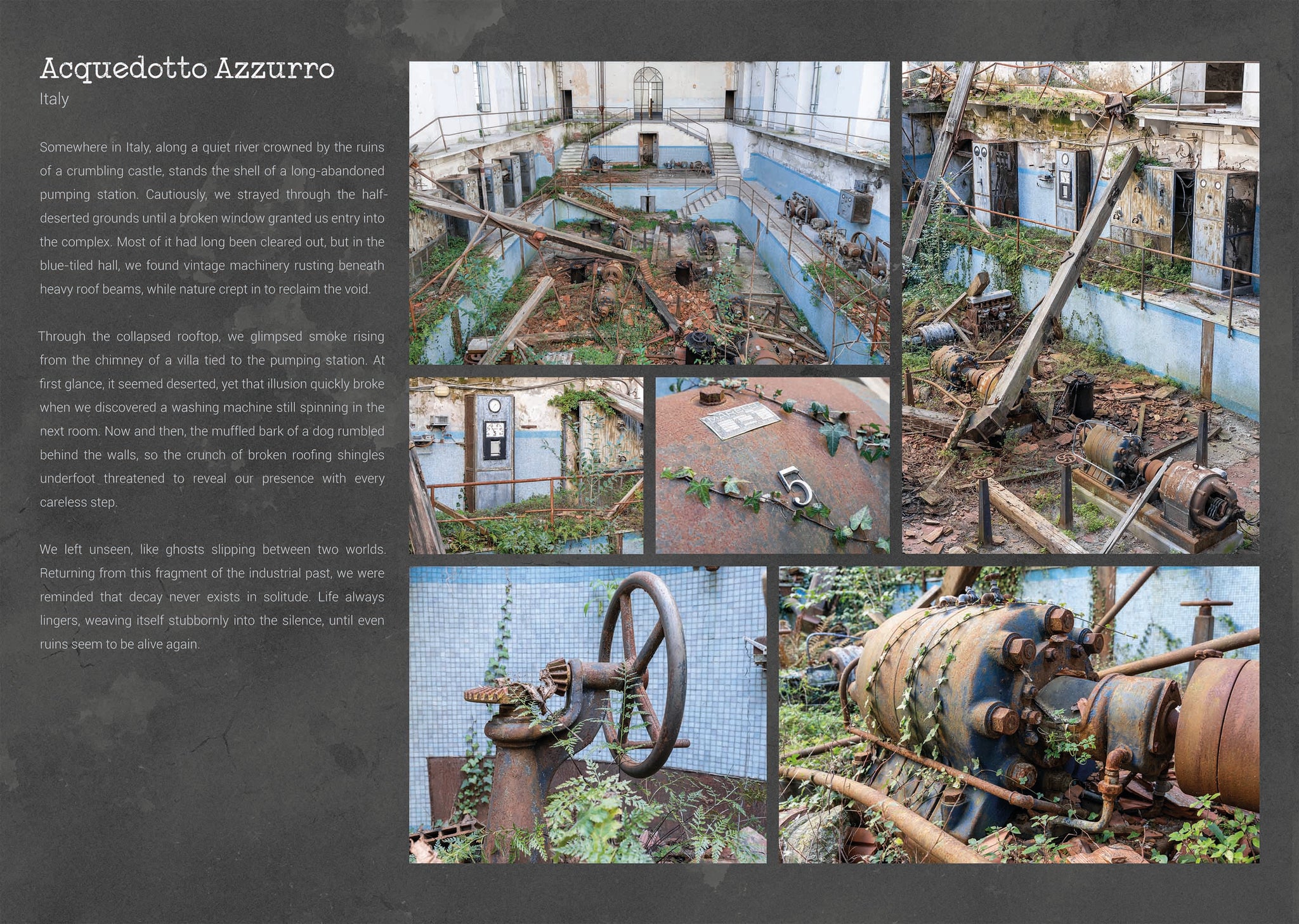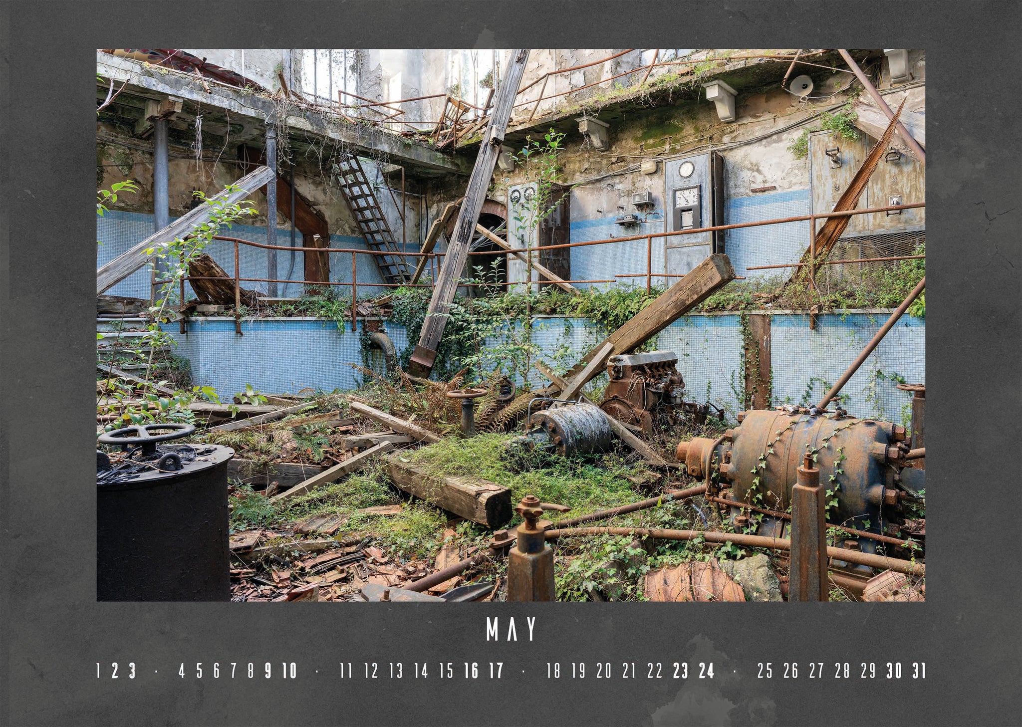 Printed on 13 pages of premium photographic paper, the calendar features over 80 fine-art images, each accompanied by an exploration report that offers a deeper look into the stories behind forgotten walls.